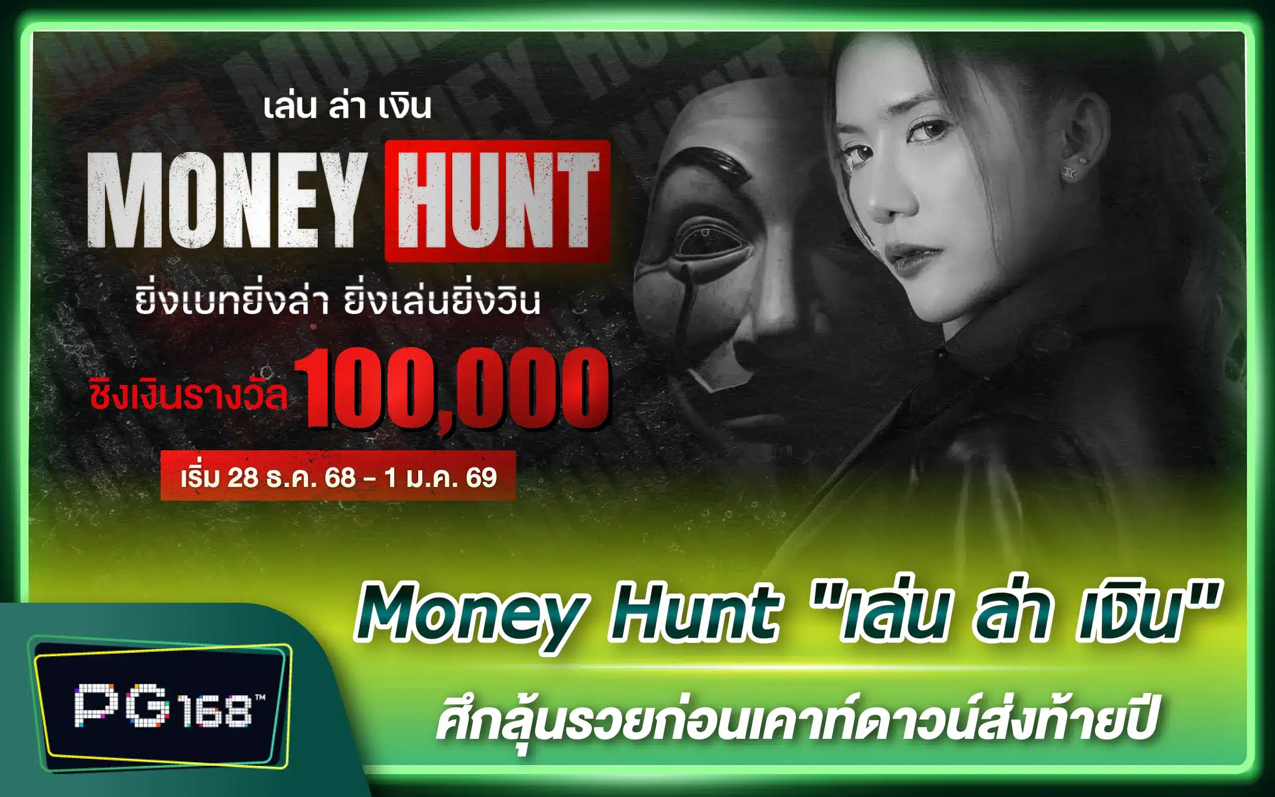 กลับมามันส์อีกครั้งกับ กิจกรรม Money Hunt “เล่น ล่า เงิน” เดิมพันลุ้นชิงเงินรางวัลรวมมูลค่ากว่า 100,000 บาท จัดพิเศษให้เฉพาะสมาชิกเว็บเกมส์ออนไลน์ในเครือทั้ง 8 เว็บไซต์ของเราเท่านั้น ได้แก่ PG168, PIGSLOT & PIGBET, HungryPussy888, 918KissME, BFK168, 116Lotto และ UFABET888 ใครที่เป็นสายล่าเครดิตตัวเด็ดตัวมัม ห้ามพลาดดีลสุดพิเศษนี้เด็ดขาด! เริ่มมันส์ไปด้วยกัน 28 ธันวาคม 2568 – 1 มกราคม 2569 นี้
